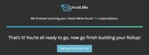 Enter Unroll.me – all you need to do is enter your e-mail address and click that you allow it access to see your inbox etc and then wait a minute or two while it finds all the items you have been subscribed too.