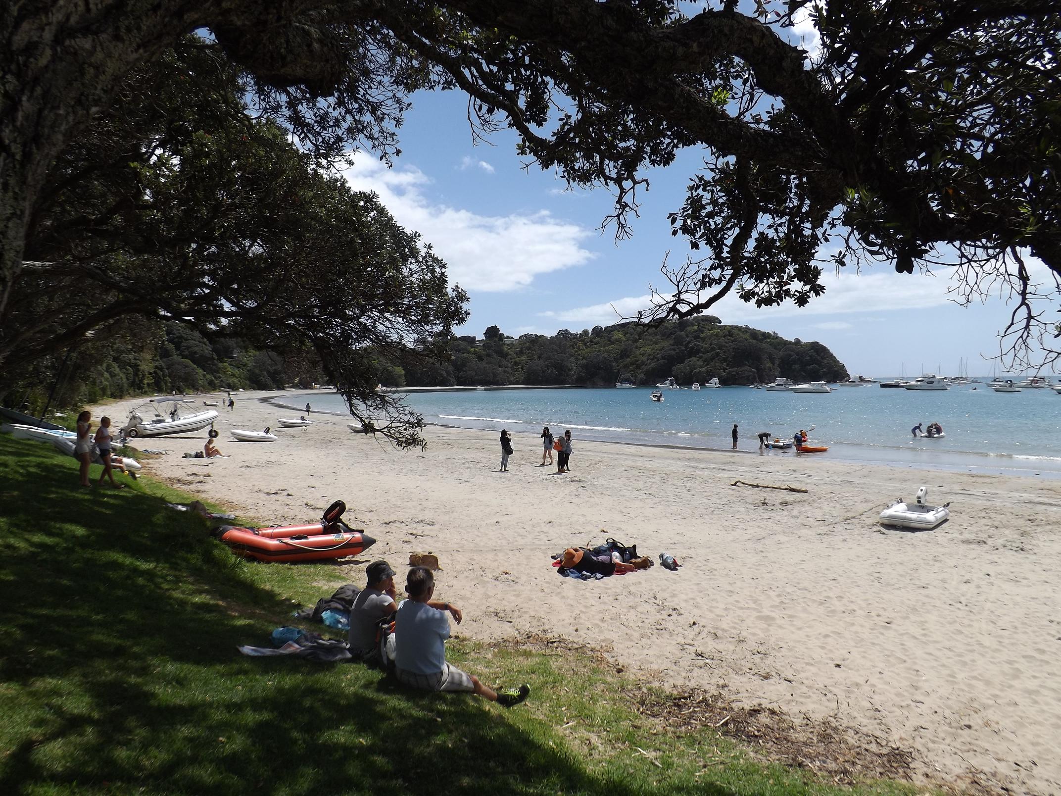 We arrived on the Island, grabbed a map from the information center at the wharf and starting peddling. We went through Oneroa (where there were a lot of people and cars out and about – I guess a nice sunny day does that ;)) and popped down a side street and ended up on the beach which was beautiful, although I’m not sure it was warm enough to justify a dip in the ocean, there were people swimming.